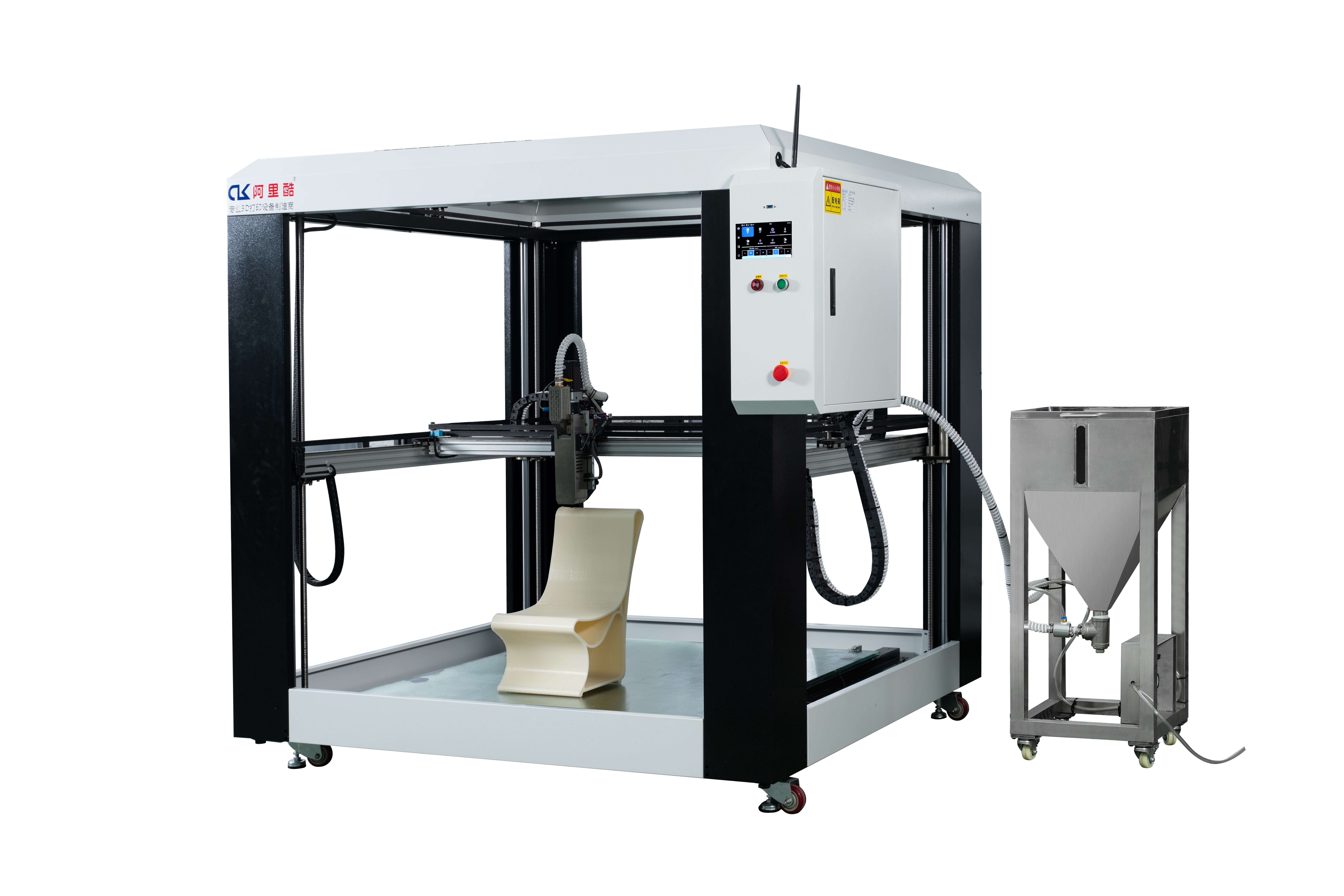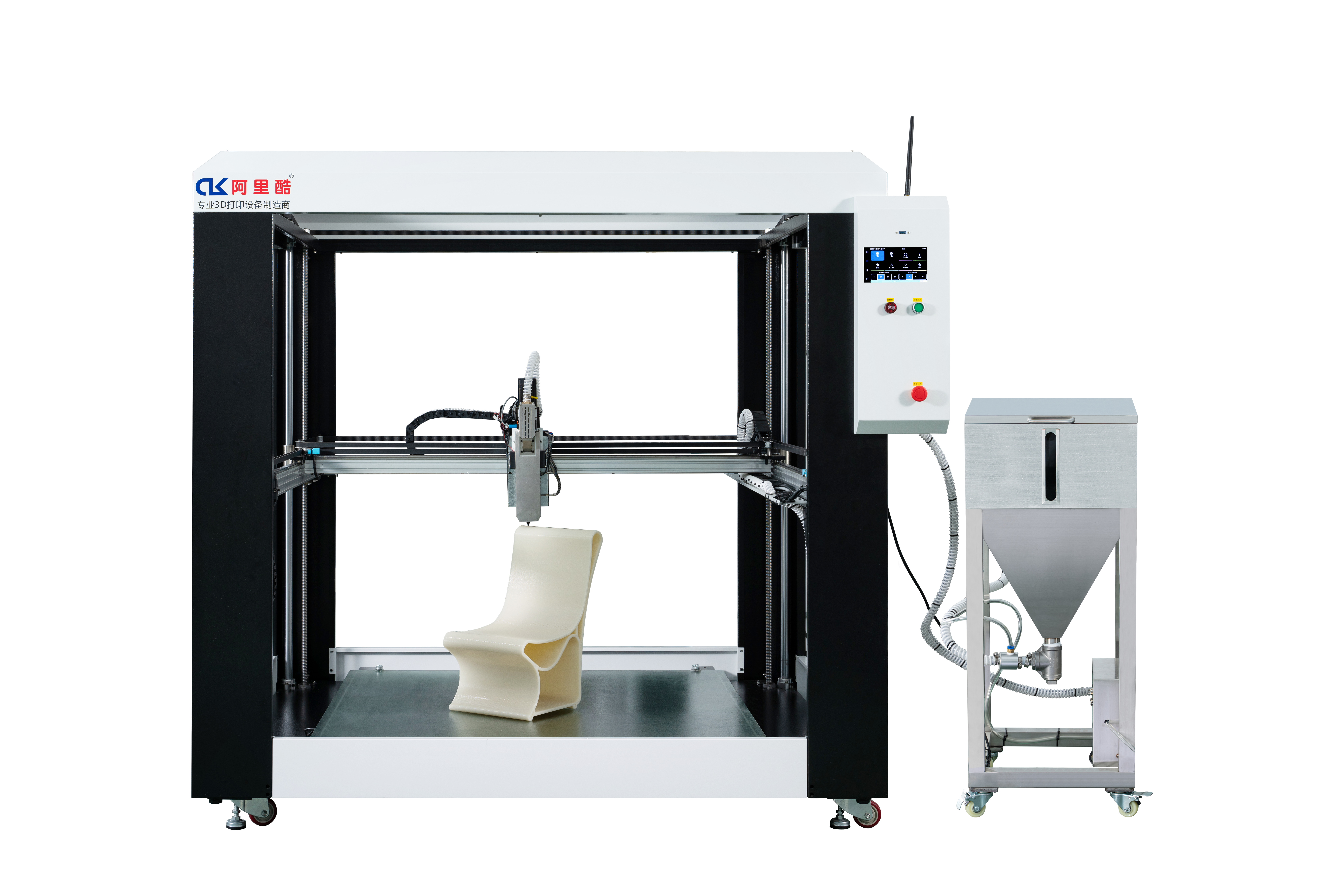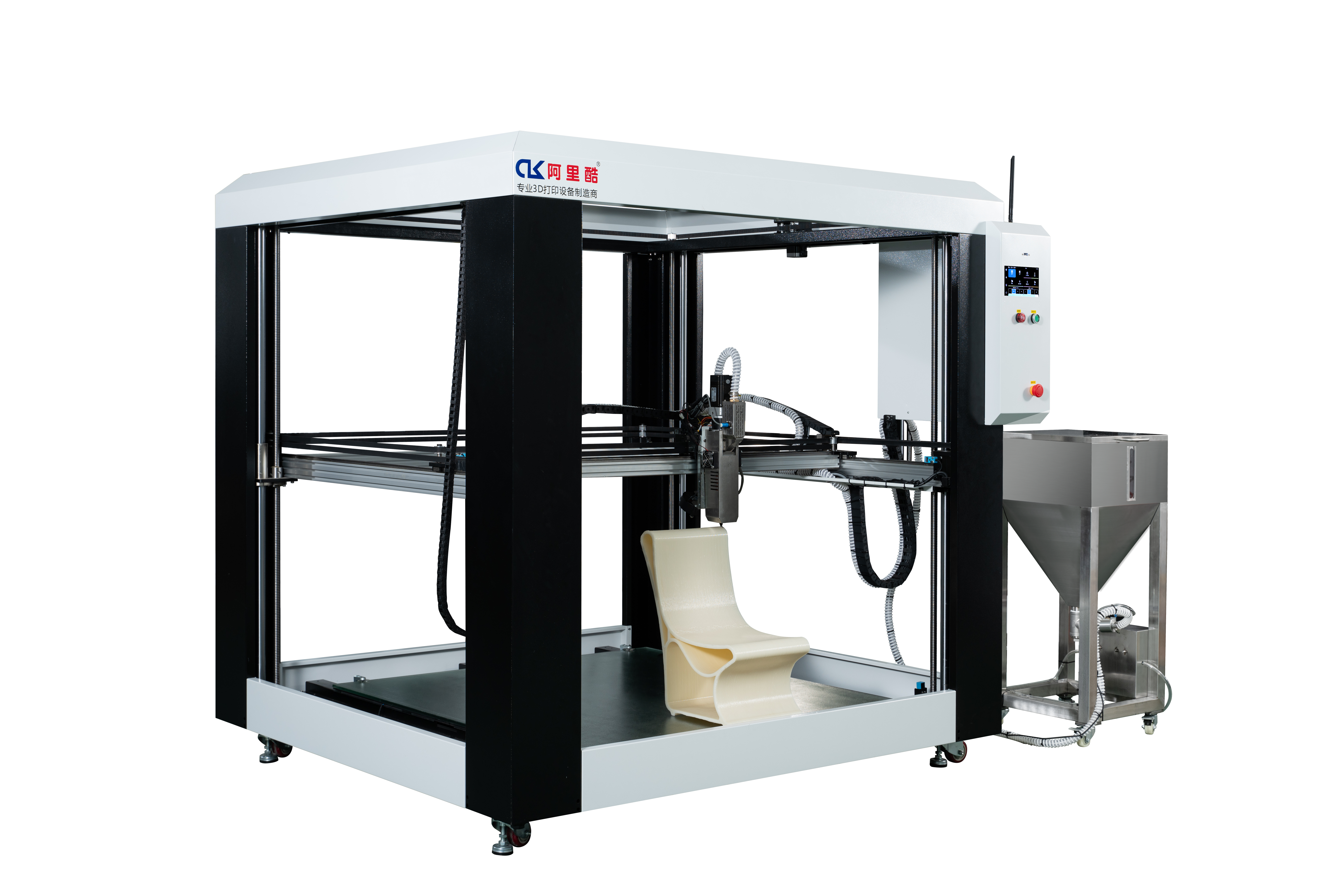 | Structure | Semi-Enclosed Heavy-Duty Industrial 3D Printer Featuring an aluminum extrusion frame with integrated sheet metal panels and powder-coated surfaces. |