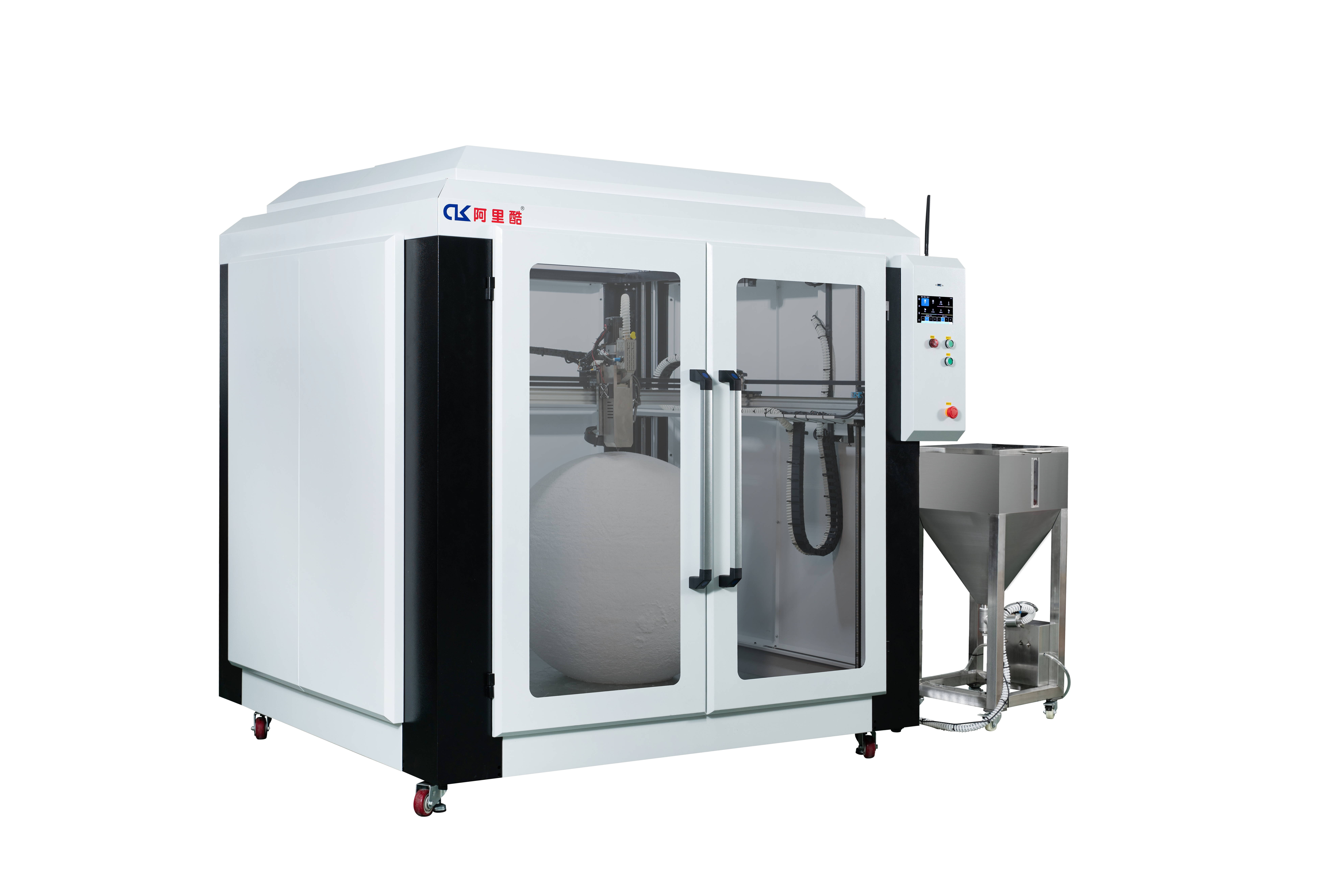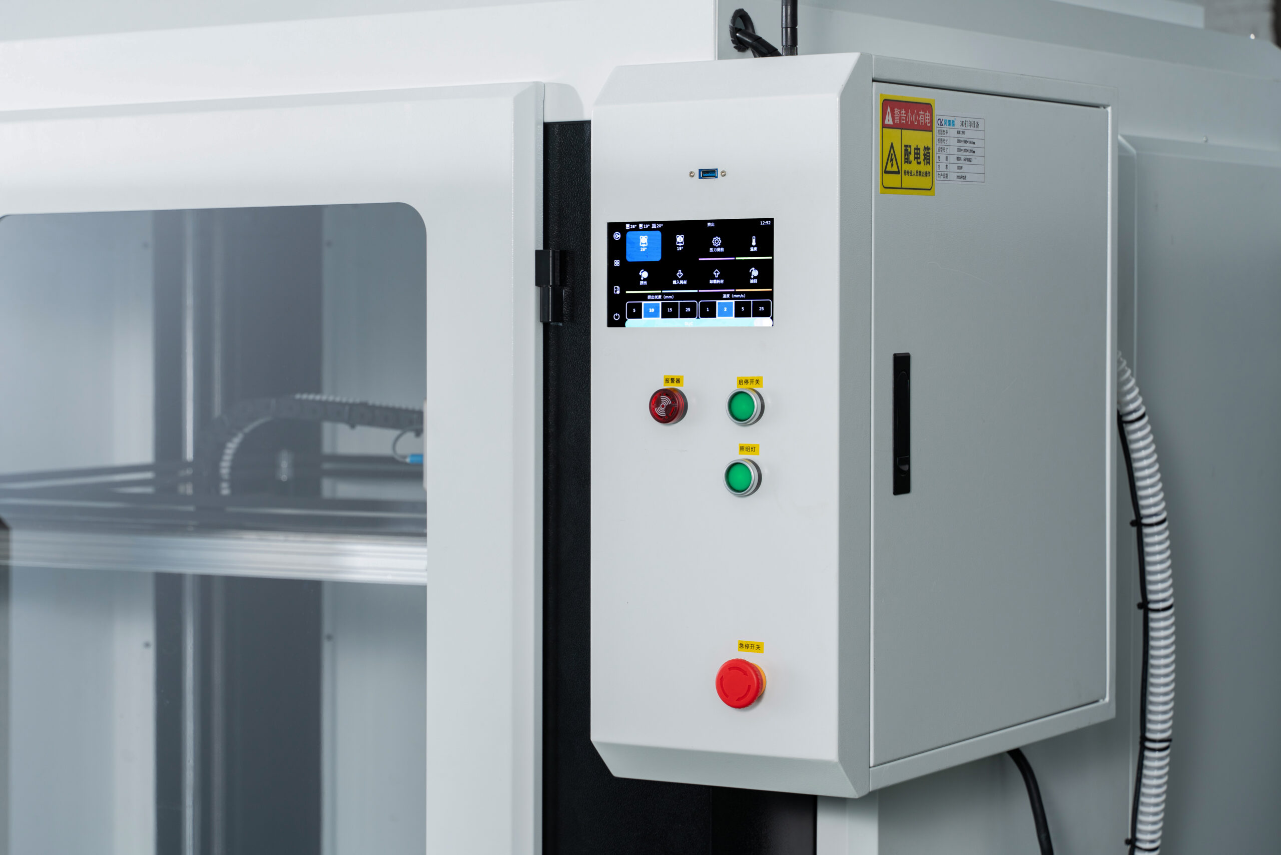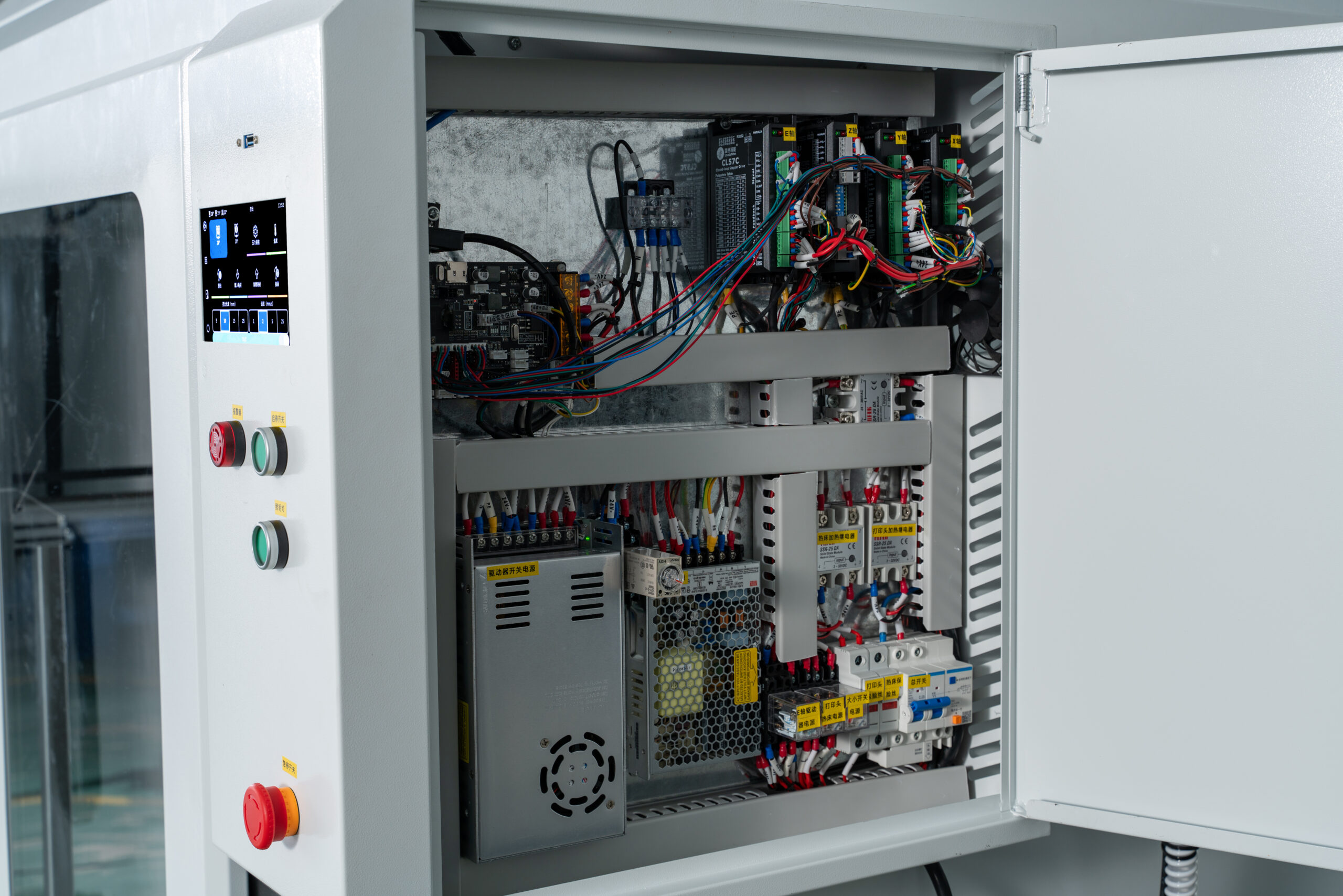 | Structure | Semi-Enclosed Heavy-Duty Industrial 3D Printer Featuring an aluminum extrusion frame with integrated sheet metal panels and powder-coated surfaces. |